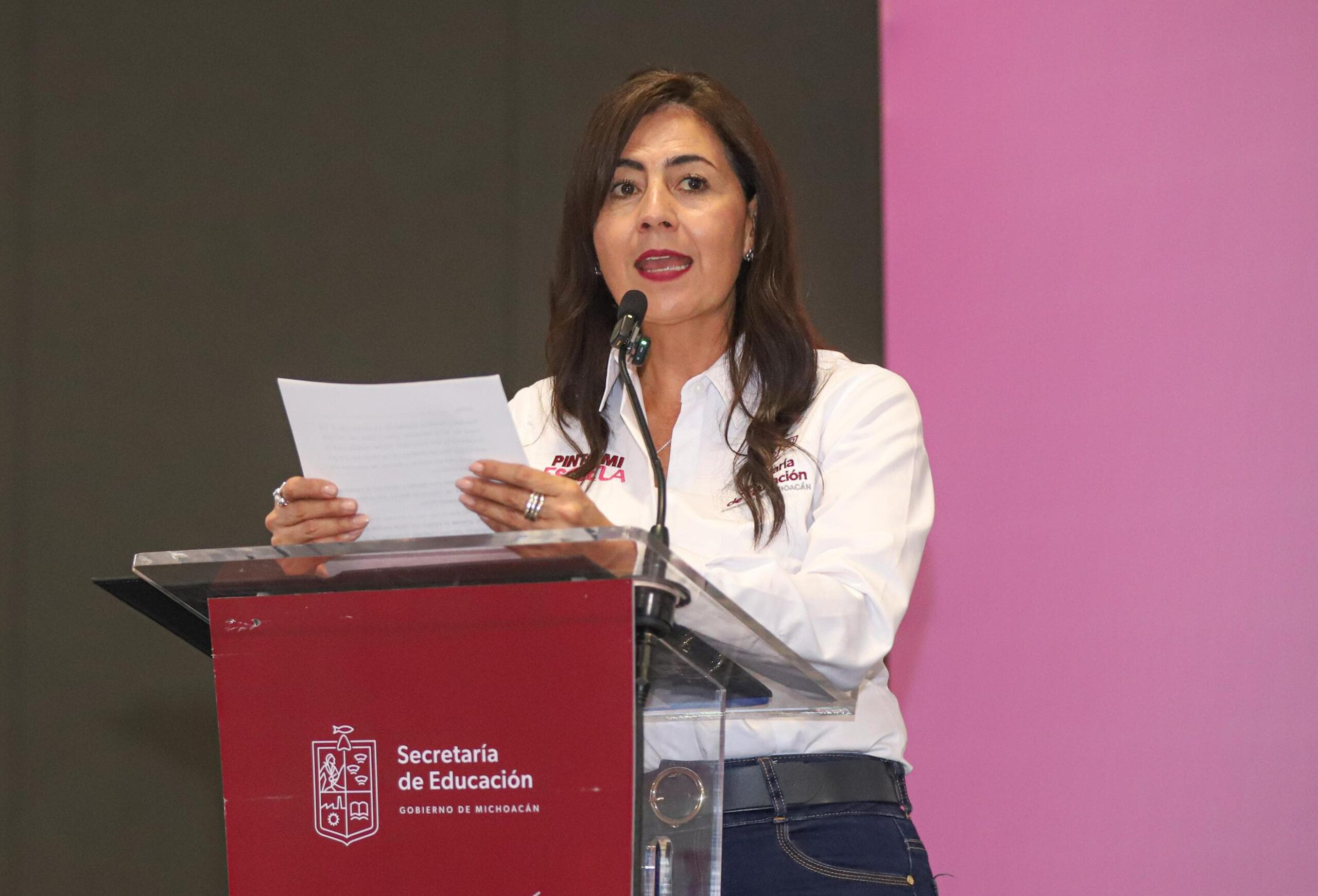 Sheinbaum firma decretos en favor del magisterio; Gaby Molina los difunde entre docentes michoacanos