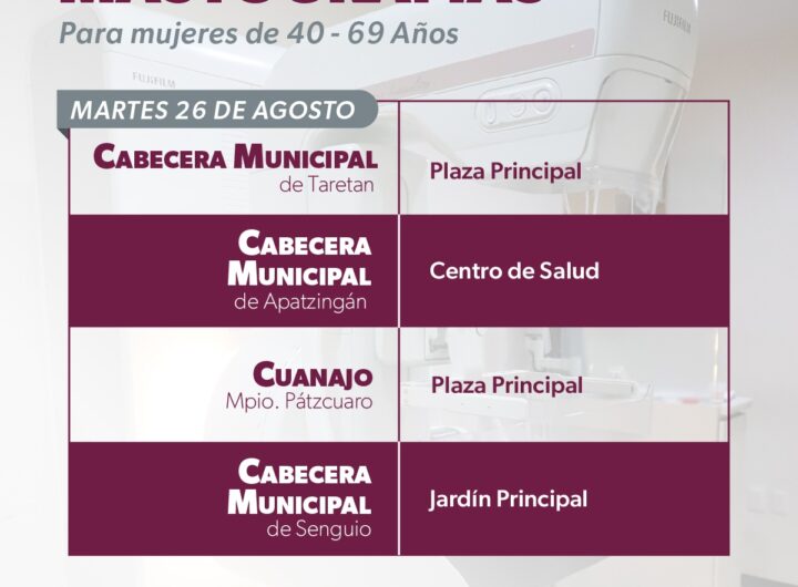 • Del 25 al 29 de agosto en Taretan, Ziracuaretiro, Pátzcuaro, Senguio, Apatzingán, Villa Madero y Morelia...