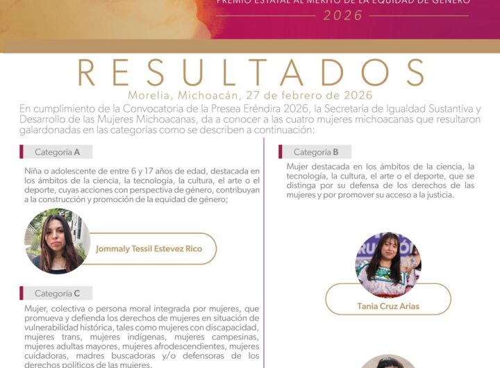 • Se destacan en la ciencia, arte y activismo Morelia, Michoacán, 27 de febrero de 2026.- La...
