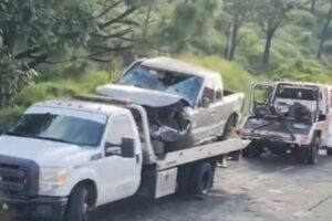 El hecho tuvo lugar a la altura del kilómetro 80+500, cerca de la comunidad de San Ángel Zurumucapio, cuando una camioneta se salió del camino y terminó entre la vegetación, fuera de la cinta asfáltica.