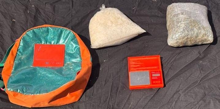 Posteriormente, en el municipio de Huetamo, sobre la carretera Zitácuaro–Ciudad Altamirano, las fuerzas de seguridad localizaron una mochila en estado de abandono. En su interior se encontraron dos envoltorios con alrededor de 900 gramos de sustancia granulada con características propias de la metanfetamina, así como 500 gramos adicionales de marihuana.