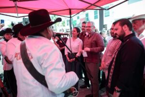Múgica, Michoacán, 6 de septiembre de 2025.- El gobernador Alfredo Ramírez Bedolla aseguró que en Michoacán no existe censura ni veto hacia la música tradicional de Los Hermanos Jiménez, tras el compromiso del grupo de no interpretar narcocorridos ni piezas que hagan apología del delito en eventos públicos.
