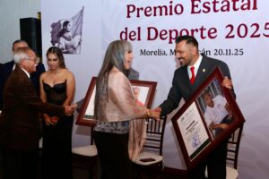 La ceremonia también rindió homenaje a la paratleta Lucía Sosa Vázquez, medallista paralímpica en Atenas 2004, y a los entrenadores de voleibol María del Carmen Rangel Tapia y Luis Miguel Vázquez Aguado, por su entrega y contribución al deporte michoacano.