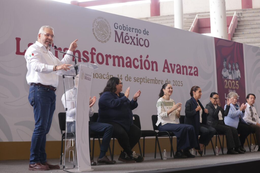 Morelia, Michoacán, 14 de septiembre de 2025.- En el marco del informe regional presentado por la presidenta Claudia Sheinbaum Pardo en Morelia, el gobernador Alfredo Ramírez Bedolla subrayó los avances que Michoacán ha tenido en educación e infraestructura gracias al respaldo del Gobierno Federal.