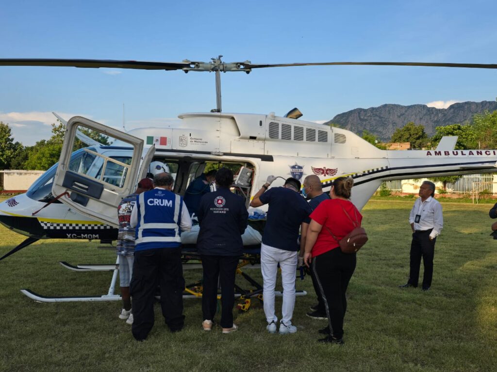 Debido a la gravedad de sus lesiones, el CRUM coordinó su traslado en ambulancia aérea a la ciudad de Morelia, donde recibe atención médica especializada.