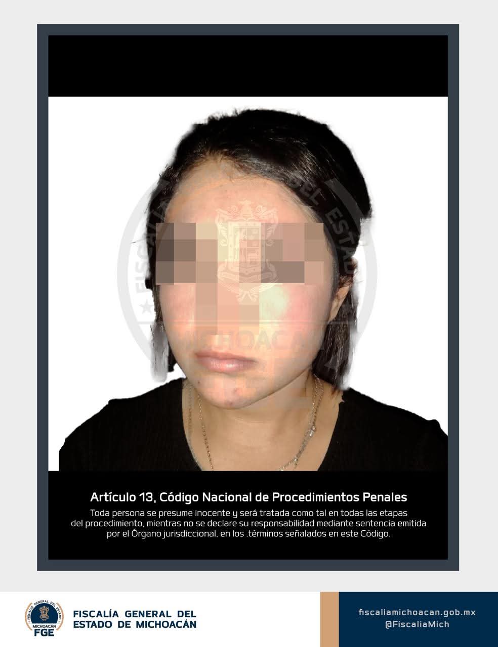 Morelia, Michoacán, a 27 de diciembre de 2025.- La Fiscalía General del Estado de Michoacán (FGE) detuvo a Jessica Guadalupe “N”, elemento de la Policía Municipal de Ario, por su presunta participación en los delitos de homicidio, tentativa de homicidio y secuestro agravado, cometidos en agravio de cuatro personas en el municipio de Salvador Escalante.