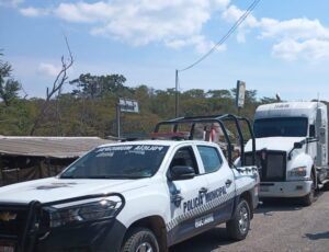 Huetamo, Michoacán, 8 de noviembre de 2025.- La Dirección de Seguridad Pública Municipal de Huetamo informó que un tractocamión con reporte de robo fue detectado mediante el Arco Carretero de salida a Morelia y posteriormente interceptado sobre la carretera estatal La Eréndira–Carácuaro, a la altura de la comunidad de La Eréndira.