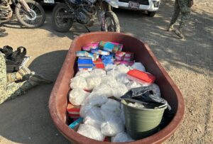 Huetamo, Michoacán, 9 de noviembre de 2025.- En una serie de acciones coordinadas, elementos de la Secretaría de la Defensa Nacional (Sedena) y de la Guardia Nacional (GN) aseguraron en el municipio de Huetamo más de 300 kilogramos de droga, 14 armas largas, ocho vehículos y cientos de municiones.