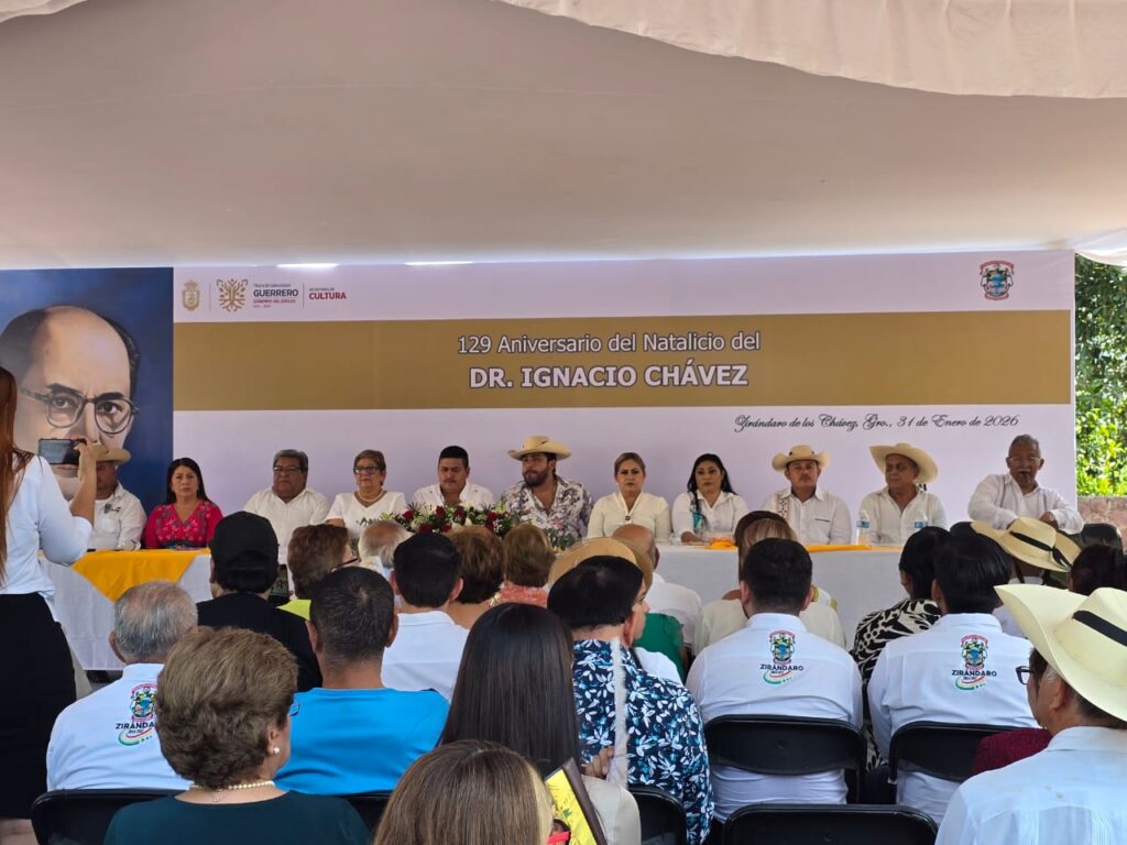 Zirándaro de los Chávez, Guerrero, 31 de enero de 2026.- La administración municipal de Zirándaro, que encabeza Jaime Torres García, en coordinación con el Gobierno del Estado de Guerrero, conmemoró el 129 aniversario del natalicio del Dr. Ignacio Chávez Sánchez, ilustre cardiólogo zirandarense, con un acto cívico realizado en la plaza principal de la cabecera municipal.