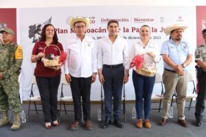 A su vez, Roberto Pantoja Arzola, delegado de Bienestar en Michoacán, afirmó que el Plan Michoacán por la Paz y la Justicia fortalece el áreas estratégicas como seguridad, desarrollo económico, infraestructura carretera e hidráulica, educación, salud, vivienda, cultura y programas sociales, así como acciones de atención a mujeres, jóvenes y pueblos indígenas.