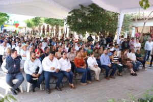 Al evento acudieron la secretaria del Bienestar de Michoacán, Andrea Janet Serna Hernández, el presidente municipal de Huetamo, Pablo Varona Estrada, y vecinas y vecinos de la localidad.