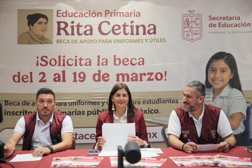 Morelia, Michoacán, 13 de marzo de 2026.- La secretaria de Educación, Gabriela Molina, encabezó una asamblea virtual junto con el equipo de Juan Pablo Calvillo Tinoco, coordinador estatal de Becas para el Bienestar, a fin de orientar a madres, padres y tutores sobre el proceso de incorporación al programa de la Beca Rita Cetina para nivel primaria. Asimismo, recordó que el registro cierra el 19 de marzo.
