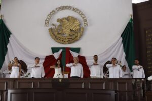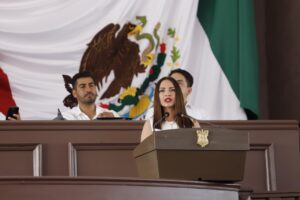 Durante la Sesión Solemne celebrada en Apatzingán, con la presencia de los titulares de los poderes Ejecutivo y Judicial, la presidenta del Congreso, Giulianna Bugarini Torres, destacó que desde el Poder Legislativo se revisarán los ordenamientos jurídicos necesarios para devolver la paz y garantizar la justicia social en Michoacán.