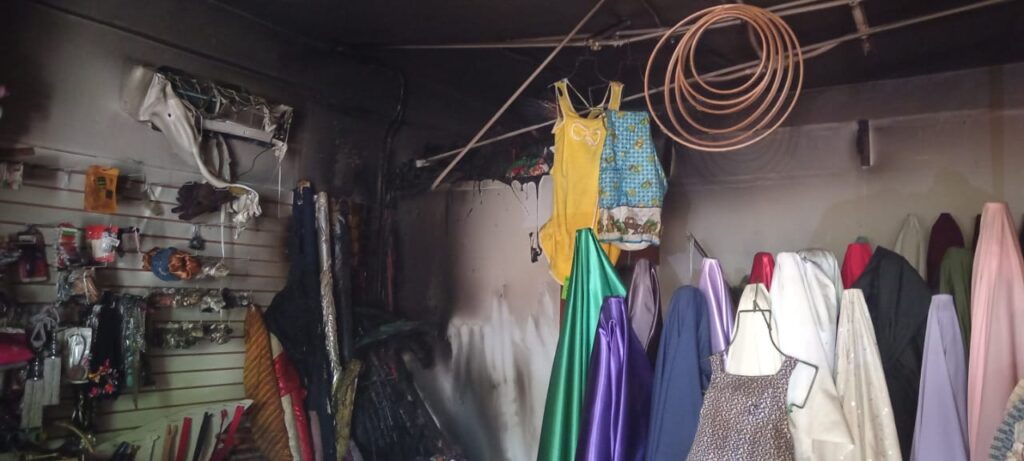Al arribar al lugar, elementos de la Cruz Roja Huetamo y Protección Civil Municipal localizaron un establecimiento de venta de telas y mercería del que salía abundante humo negro. En el interior se encontraba un masculino que intentaba sofocar las llamas entre telas y otros materiales que aún presentaban brasas.