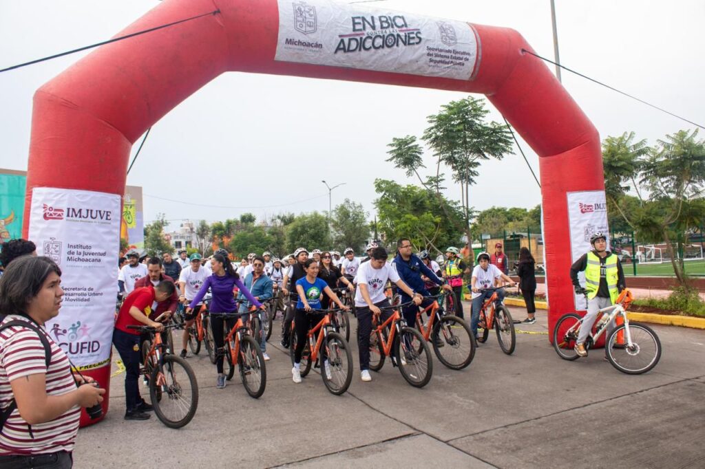En el marco del Día Internacional de la Juventud y del programa “Agosto Joven”, alrededor de 300 jóvenes de Michoacán participaron este domingo en una rodada y carrera por la paz y contra las adicciones, organizada por el Instituto Mexicano de la Juventud (Imjuve) y el Instituto de la Juventud Michoacana (Ijumich). El evento contó con el apoyo de la Secretaría de Desarrollo Urbano y Movilidad, el Secretariado Ejecutivo del Sistema Estatal de Seguridad Pública y la Comisión Estatal de Cultura Física y Deporte.