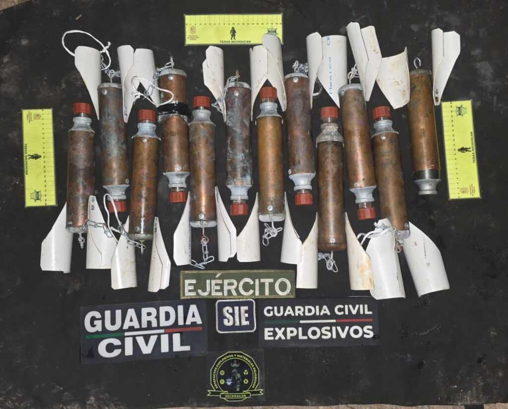 Tuzantla, Michoacán, 17 de junio de 2025.- Como parte de las acciones permanentes para garantizar la seguridad en Michoacán, elementos de la Secretaría de Seguridad Pública (SSP) y de la Secretaría de la Defensa Nacional (Sedena) localizaron y destruyeron 12 artefactos explosivos en el municipio de Tuzantla.