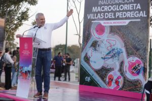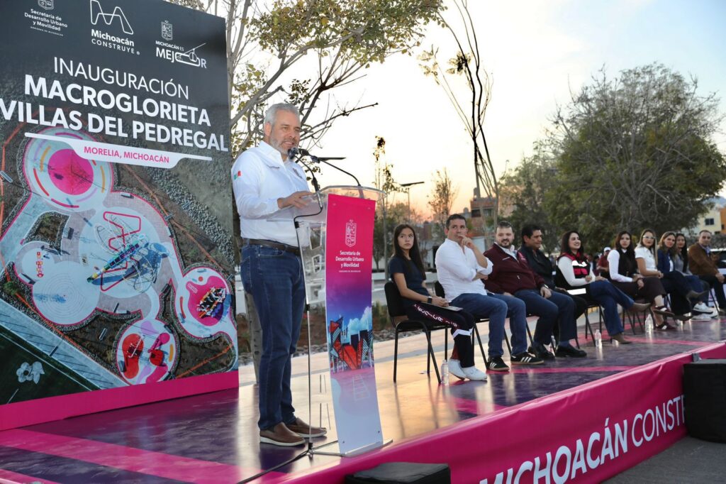Morelia, Michoacán, 21 de noviembre de 2025.- El gobernador Alfredo Ramírez Bedolla inauguró la macroglorieta de Villas del Pedregal, una obra con inversión 100 por ciento estatal de 20 millones de pesos destinada al rescate y dignificación del espacio público en la zona poniente de Morelia.