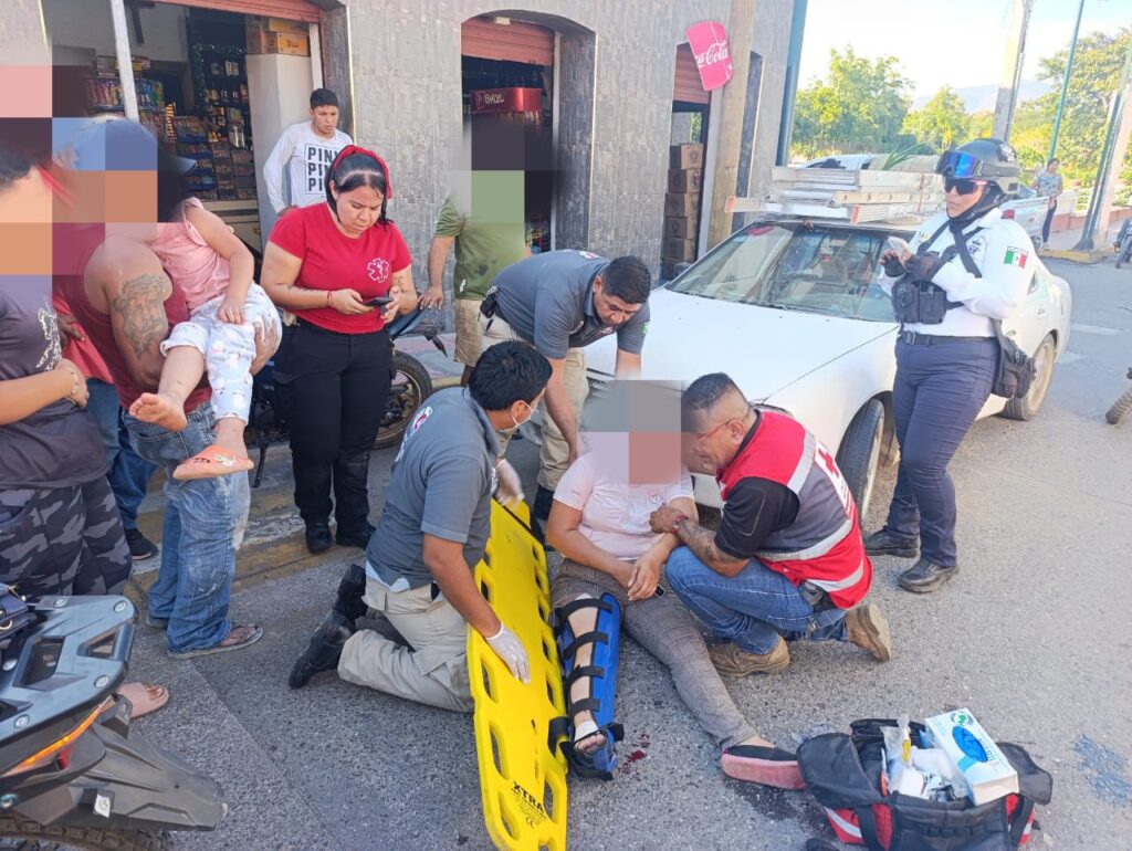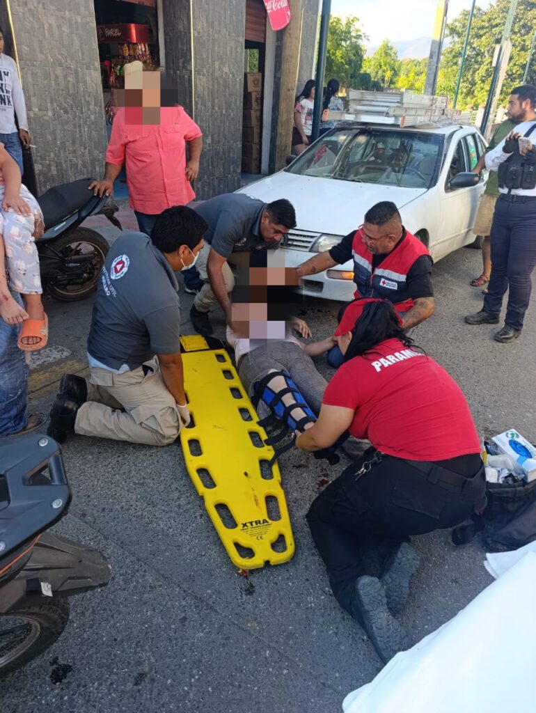 De acuerdo con el reporte preliminar, la motocicleta circulaba presuntamente a exceso de velocidad cuando colisionó con la puerta del automóvil que se encontraba estacionado, provocando lesiones a la persona que viajaba en la unidad de dos ruedas y una menor de edad que la acompañaba.