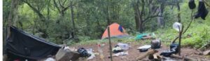 Uruapan, Michoacán, 22 de noviembre del 2025.- Como parte del Plan Paricutín, integrado al Plan Michoacán por la Paz y la Justicia, elementos de la Secretaría de Seguridad Pública (SSP) y de la Secretaría de la Defensa Nacional (Sedena) ubicaron y destruyeron dos campamentos clandestinos presuntamente utilizados por una célula delictiva.