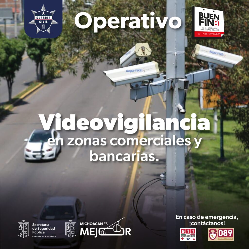 Morelia, Michoacán, 14 de noviembre de 2025.- Para asegurar que las y los michoacanos disfruten de un Buen Fin 2025 con tranquilidad, la Secretaría de Seguridad Pública (SSP) puso en marcha un dispositivo integral de vigilancia y prevención en toda la entidad, enfocado en los días de mayor actividad comercial del año.