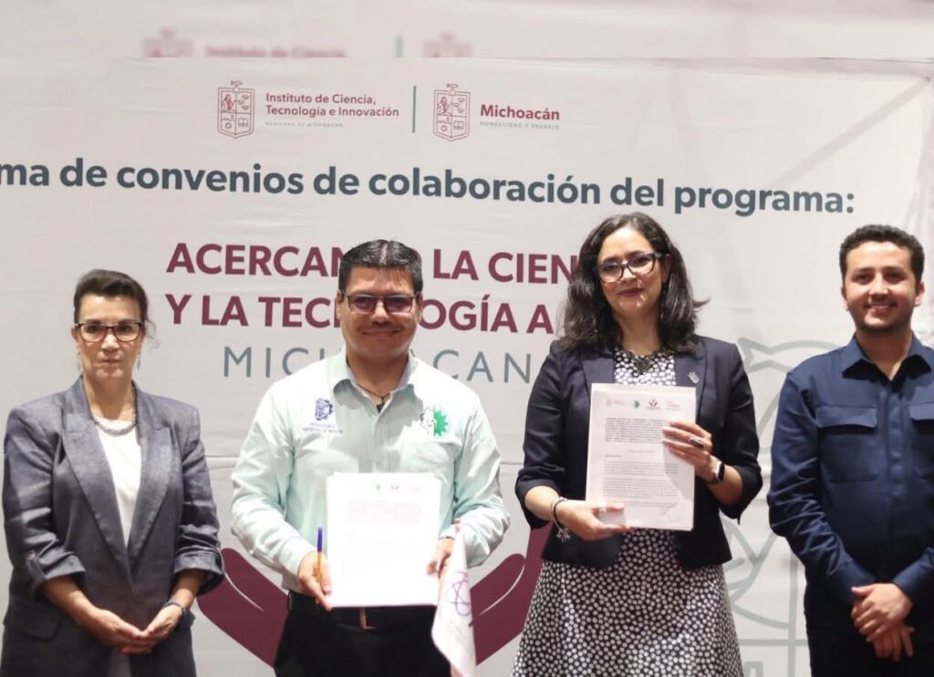 Huetamo, Michoacán, 6 de agosto de 2025.- El Mtro. Eugenio Núñez Ríos, Director General del Instituto Tecnológico Superior de Huetamo, participó en la firma del convenio del programa “Acercando la Ciencia y la Tecnología a los michoacanos”, una iniciativa impulsada por el Instituto de Ciencia, Tecnología e Innovación (ICTI) en coordinación con las Instituciones de Educación Superior de las 11 regiones del estado.