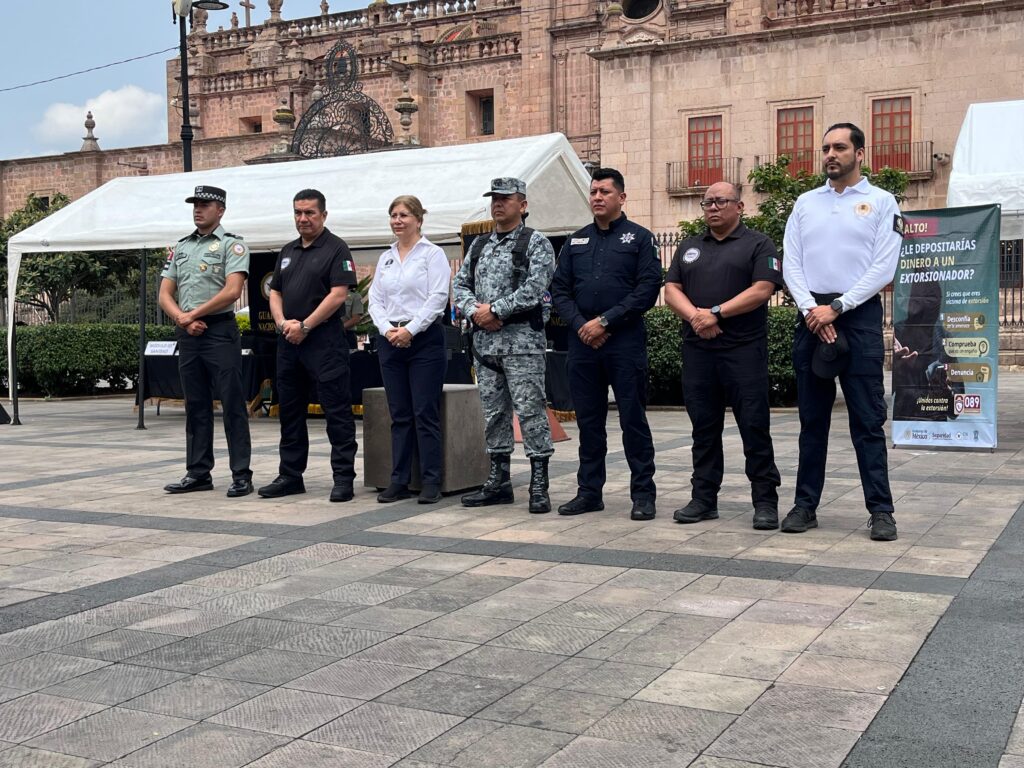 Morelia, Michoacán, 13 de julio de 2025.- Como parte de la Estrategia Nacional Contra la Extorsión instruida por la presidenta Claudia Sheinbaum Pardo, autoridades de seguridad desplegaron en Morelia una jornada informativa para fomentar la denuncia ciudadana y reducir la incidencia de este delito.