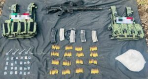 También se decomisaron dos chalecos tácticos con insignias alusivas a un grupo delictivo. Todo lo asegurado fue puesto a disposición de la autoridad correspondiente para las diligencias legales pertinentes.