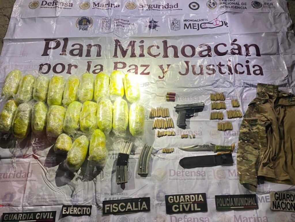 Zamora, Michoacán, 27 de enero del 2026.- Elementos de la Secretaría de Seguridad Pública (SSP) apoyaron a la Fiscalía General del Estado (FGE) en la cumplimentación de una orden de cateo en Zamora. En coordinación con la Secretaría de la Defensa Nacional (Defensa), la Guardia Nacional (GN) y la Policía Municipal, aseguraron cerca de nueve kilogramos de mariguana, una réplica de arma de fuego y 109 cartuchos útiles.