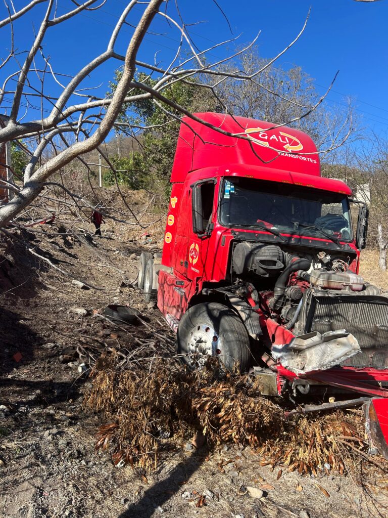 El incidente ocurrió alrededor de las 16:00 horas, a la altura del kilómetro 128, en las inmediaciones de la comunidad de El Zapote de los Gómez, municipio de Carácuaro. En el percance se vio involucrado un tractocamión marca Volvo, línea T3, color rojo, modelo 2008, con placas federales 55AM8K y número de serie 4V4NC9GH68N489410.