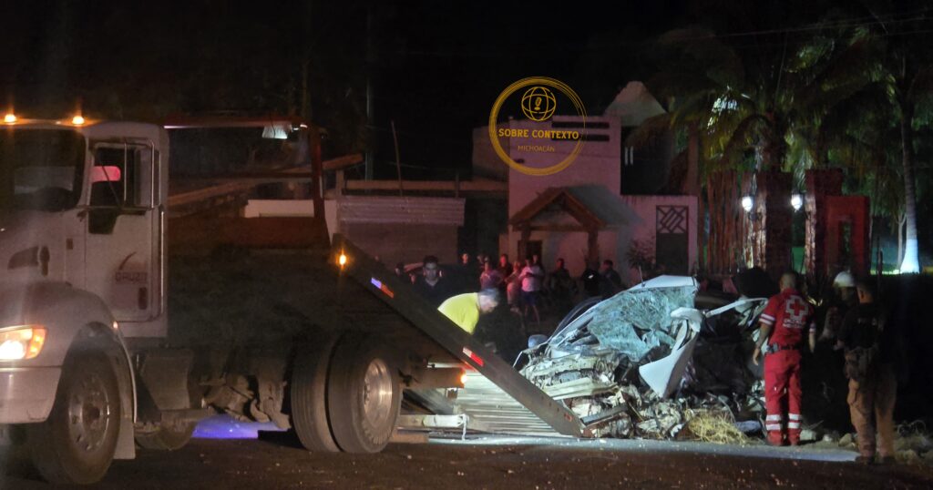 Huetamo, Michoacán, 14 de marzo de 2026.- Un fatal accidente se registró sobre la carretera federal 51, a la altura de la comunidad de Purechucho, en el municipio de Huetamo, donde un tractocamión colisionó contra un automóvil compacto tipo sedán Nissan March.