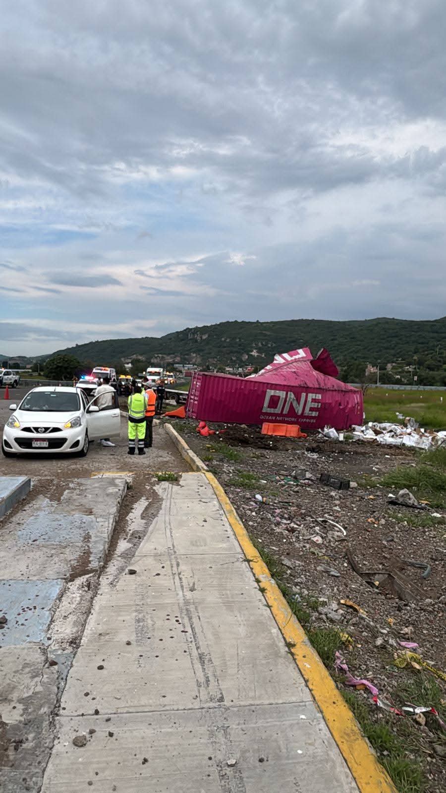El percance ocurrió la tarde de este domingo en el kilómetro 0+000, lo que generó la movilización de rescatistas y elementos de la Guardia Nacional. El contenedor del camión sufrió daños severos; de manera extraoficial se informó que transportaba productos de uso doméstico.