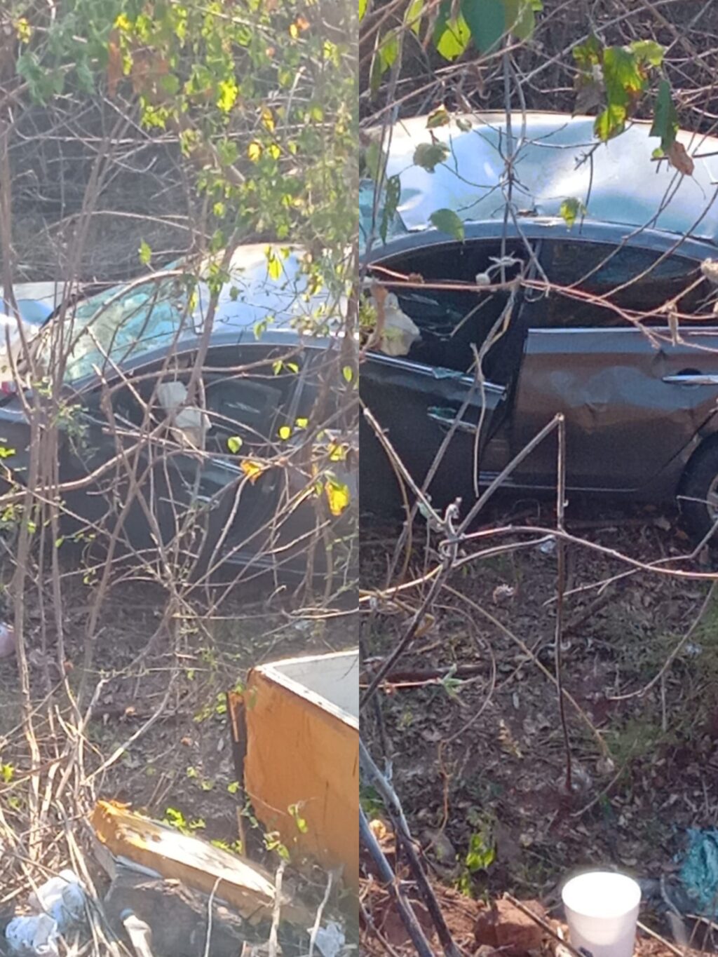 Al arribar al lugar, elementos de Seguridad Vial Estatal localizaron un automóvil Nissan Sentra, color gris y con placas del estado de Querétaro, sin que se encontrara ninguna persona en el sitio, pero lamentablemente con señales de que ya había sido desvalijado de varias pertenencias del vehículo.